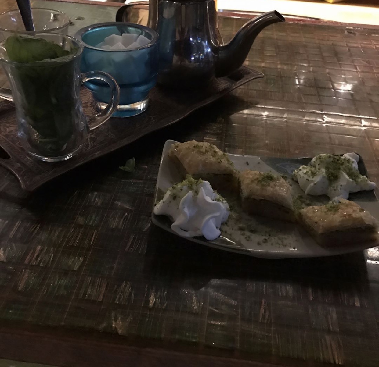 I finished off my meal with an exciting mediterranean dessert – baklava and Turkish mint tea. Mmmmm — comfort food.