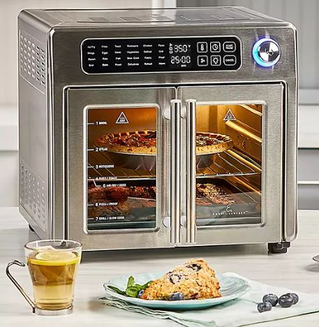 - Prepare food using various methods, including air fryer, toaster oven, rotisserie, dehydrator, roaster, bake, pizza oven, broil, indoor grill, proof dough, and slow cooker.